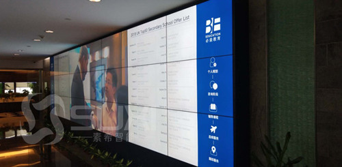 該液晶大屏幕主要位于電梯出口處,主要是用來做培訓中心宣傳使用,素希根據客戶要求定制了一組3×7拼接液晶屏,顯示畫面清晰細膩,色彩真實一致,贏得了客戶滿意的評價。